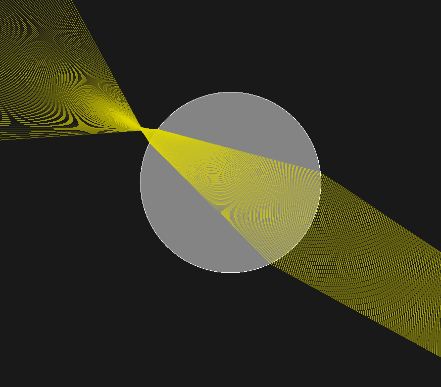 Originally it used a bitmap to cast the rays, but I replaced this with a geometric implementation as it allowed for more accuracy and finer detail, and I found that the performance cost was not that much.